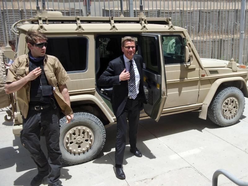 Außenminister Guido Westerwelle trifft in Masar-i-Scharif am deutschen Generalkonsulat ein. Foto: Nicolas Armer