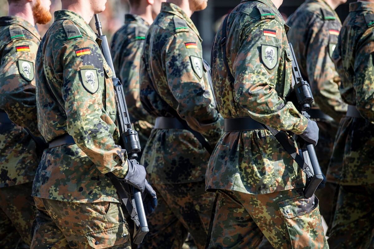 Soldaten der Bundeswehr auf dem Appellplatz im niedersächsischen Seedorf. FOTO: SCHULDT/DPA