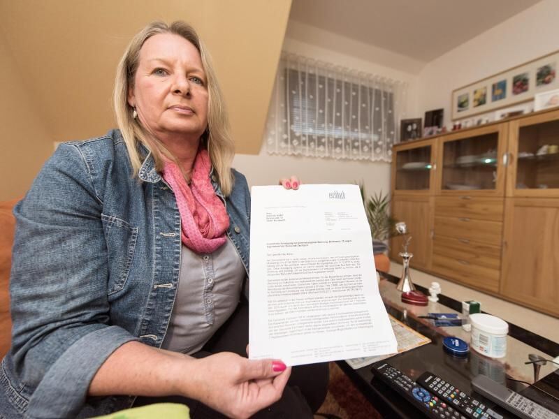 Gabriele Keller zeigt in Eschbach (Baden-Württemberg) in ihrer Wohnung die Kündigung der Gemeinde Eschbach. Die 56 Jahre alte Frau wohnt seit 23 Jahren in der gemeindeeigenen Wohnung. Foto: Patrick Seeger