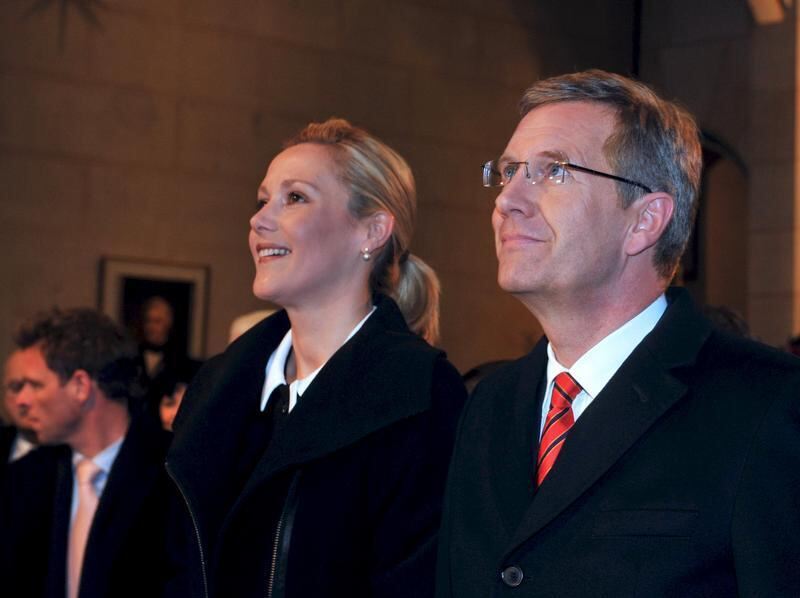 Bundespräsident Christian Wulff nimmt mit seiner Frau Bettina in der Schlosskirche in Wittenberg an der Aufzeichnung eines ZDF-Weihnachtskonzerts teil. Foto: Peter Endig