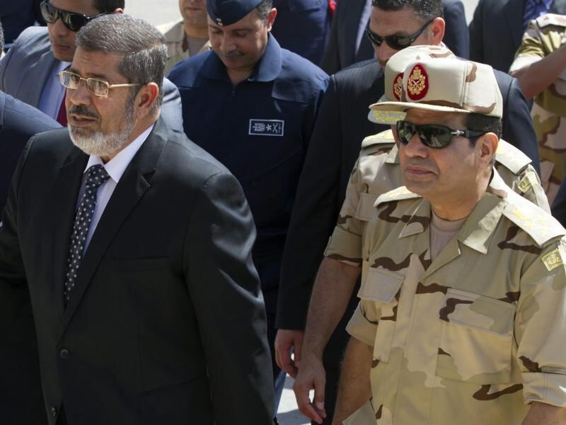 Gegenspieler: Der gestürzte Präsident Mohammed Mursi (l.) und Verteidigungsminister Abdel-Fattah al-Sisi. Foto: Khaled Elfiqi