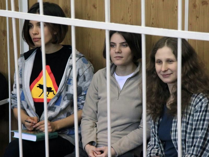 Mitglieder der Punkband Pussy Riot während einer Gerichtsverhandlung in Moskau. Foto: Sergei Chirikov