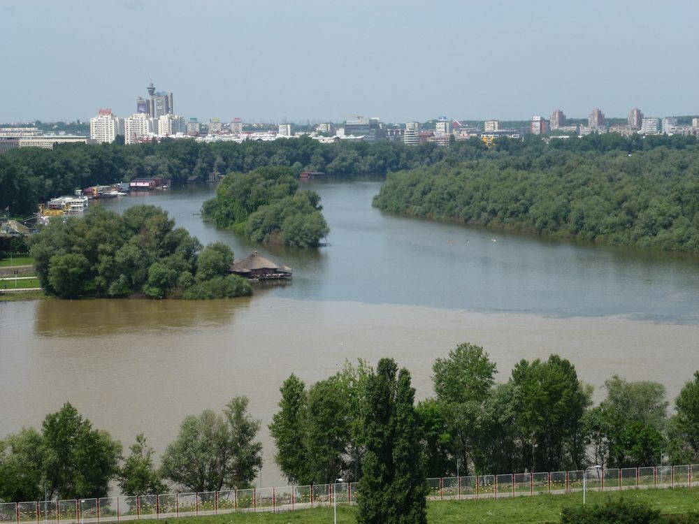 In Belgrad fließt die braune Save in die schöne blaue Donau.