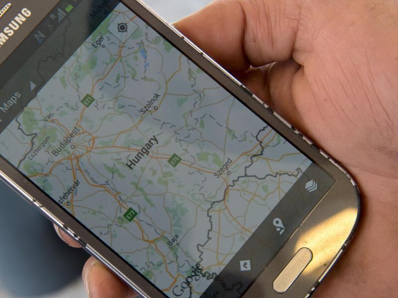 Auf seinem Smartphone zeigt ein syrischer Kurde in Budapest eine digitale Landkarte, mit deren Hilfe er sich auf seiner Flucht orientiert. Foto: Boris Roessler/