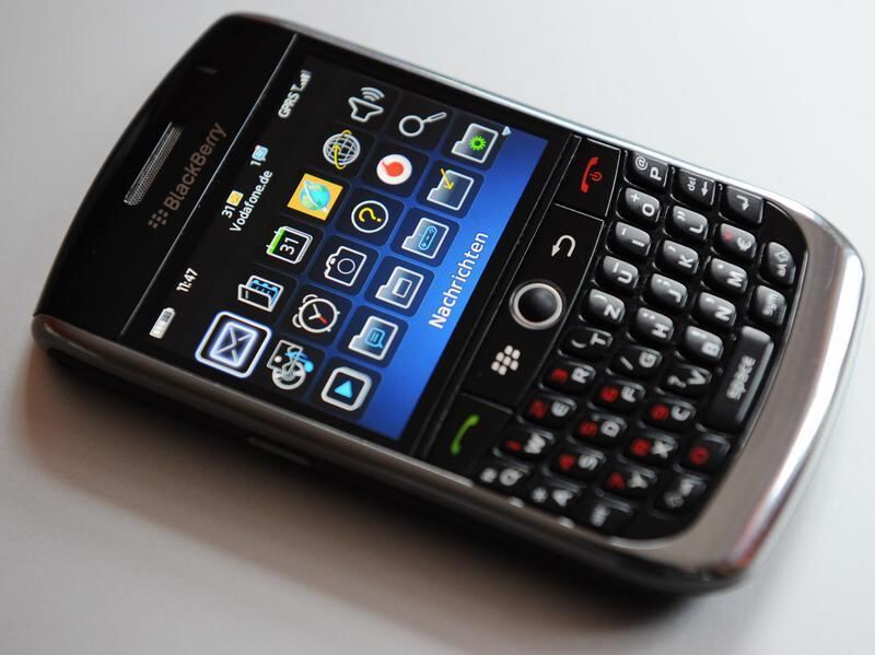 Auf dem Display eines BlackBerry Smartphones sind Apps für verschiedene Anwendungen zu sehen.