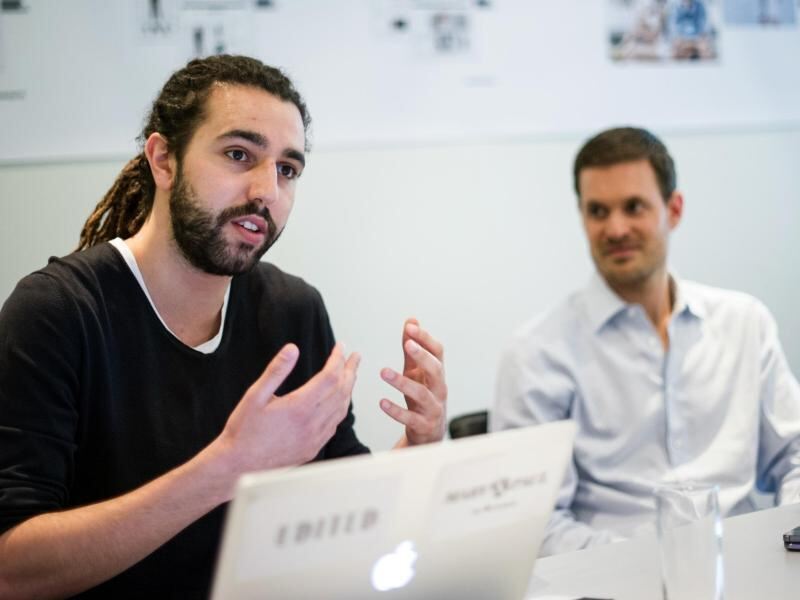 Tarek Müller (L), der Geschäftsführer Collins GmbH, und Benjamin Otto. Foto: Maja Hitij