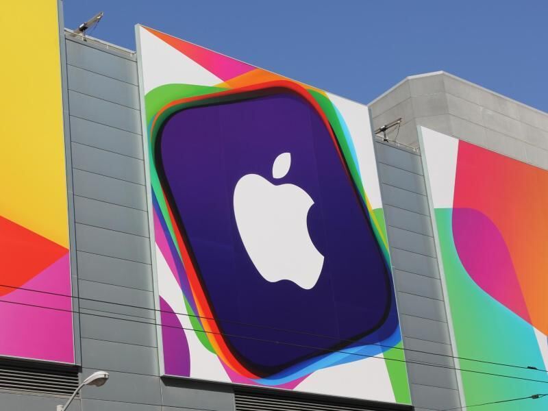 Das Apple-Logo am Moscone Center in San Francisco. Foto: Christoph Dernbach