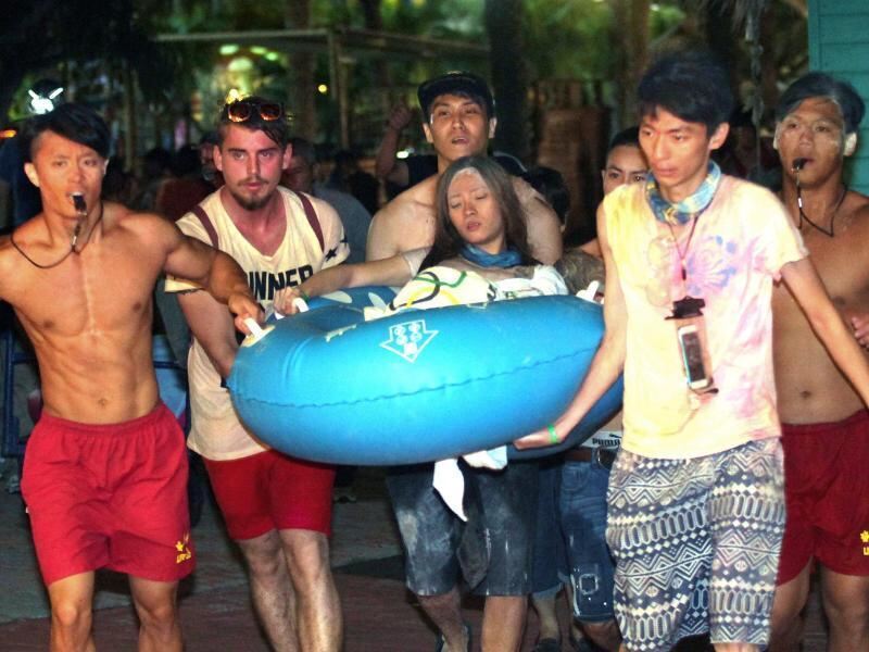 Helfer bringen eine junge Frau im »Formosa Water Park« zu einem Krankenwagen. Foto: Stringer/dpa