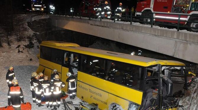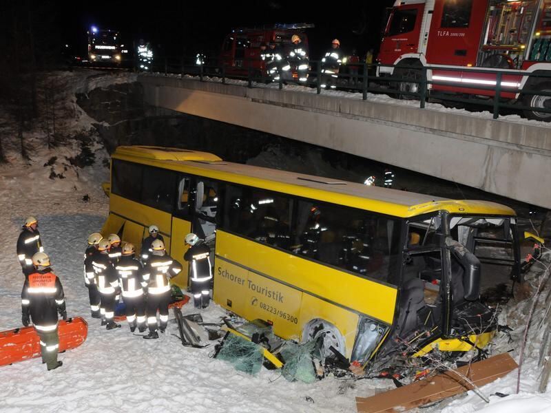 Busunglück in Tirol: Ein aus Bayern stammender Reisebus prallte gegen einen Pfeiler, ein 15-Jähriger starb.