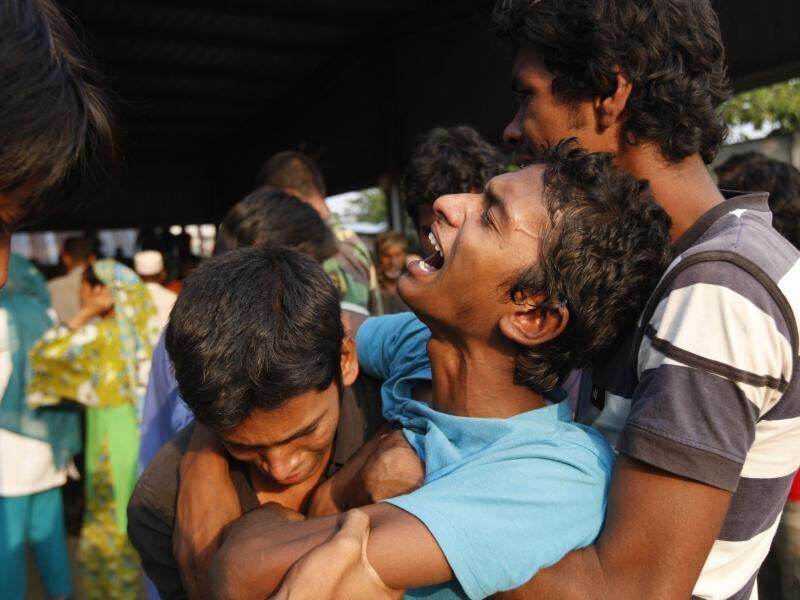 Verzweifelte Angehörige: Nach dem Gebäudeeinsturz in Bangladesch wird befürchtet, dass noch Hunderte Menschen unter Betonteilen liegen. Foto: Abir Abdullah