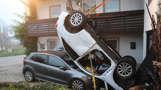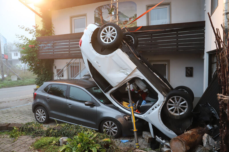 STÖTTEN AM AUERBERG. Ein junger Autofahrer ist am frühen Sonntagmorgen in Schwaben in ein Wohnhaus gekracht. Der 18-Jährige hob in einer Linkskurve in Stötten am Auerberg (Landkreis Ostallgäu) mit seinem Auto ab und segelte mehrere Meter durch die Luft. »Anschließend prallte der Wagen in eine Hauswand, überschlug sich und blieb kopfüber auf einem geparkten Auto liegen«, sagte ein Polizeisprecher.