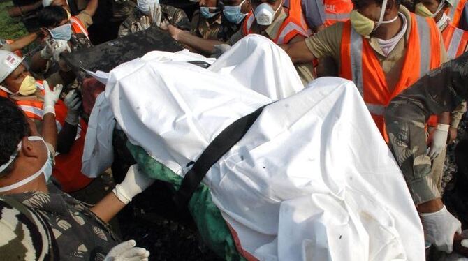 Ein Opfer wird geborgen. Mindestens 26 Menschen starben bei dem Unglück. Foto: epa
