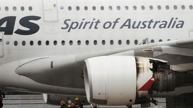 Notlandung in Singapur: Das Triebwerk des A380 ist schwer beschädigt.