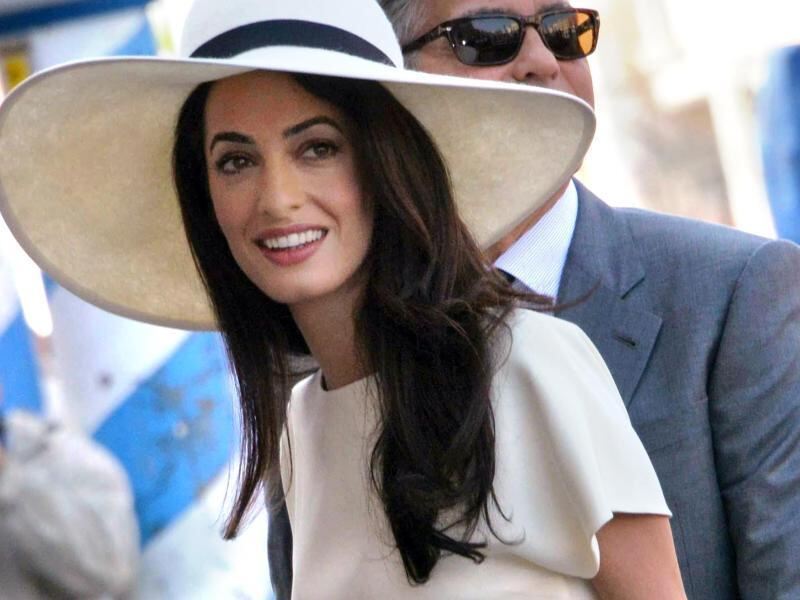 Amal Alamuddin mit George Clooney bei den Feierlichkeiten in Venedig. Foto: Andrea Merola