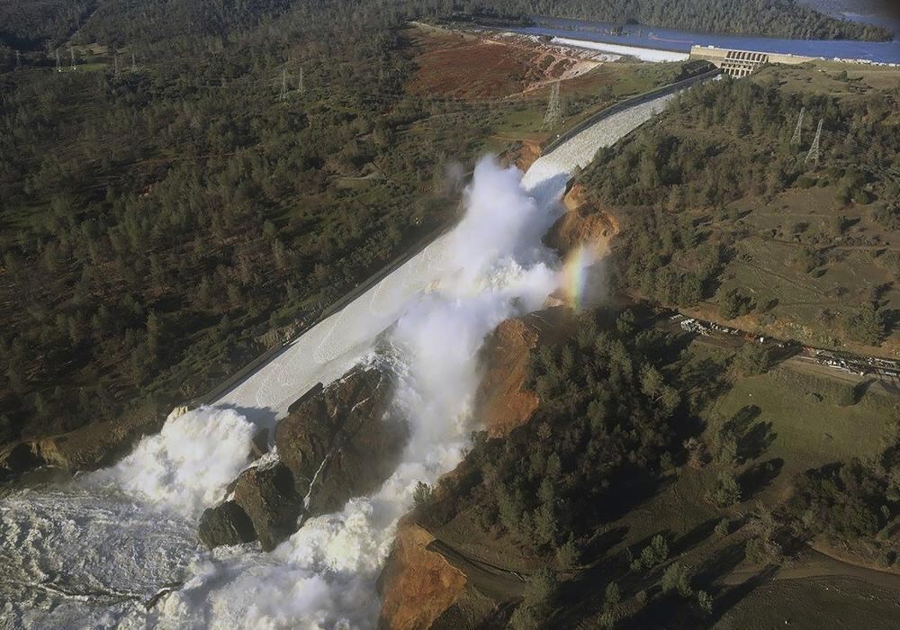 Auf dem Foto vom Kalifornischen Department für Wasser-Reserven, ist der beschädigte Überlauf des Oroville-Staudamms zu sehen.