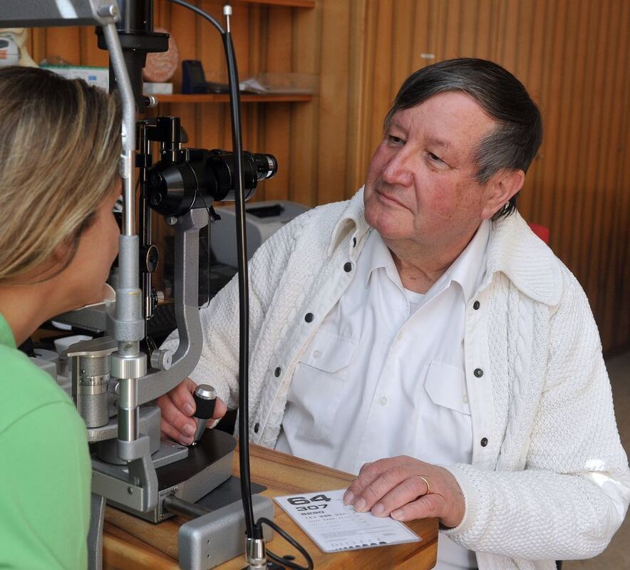 Der Augenarzt Hans-Walter Roth untersucht in seiner Praxis in Ulm eine Patientin. Er behandelt seit Jahren Menschen auch ohne Bezahlung. Damit erntet er aber nicht von allen Seiten Lob und Anerkennung. Foto: dpa