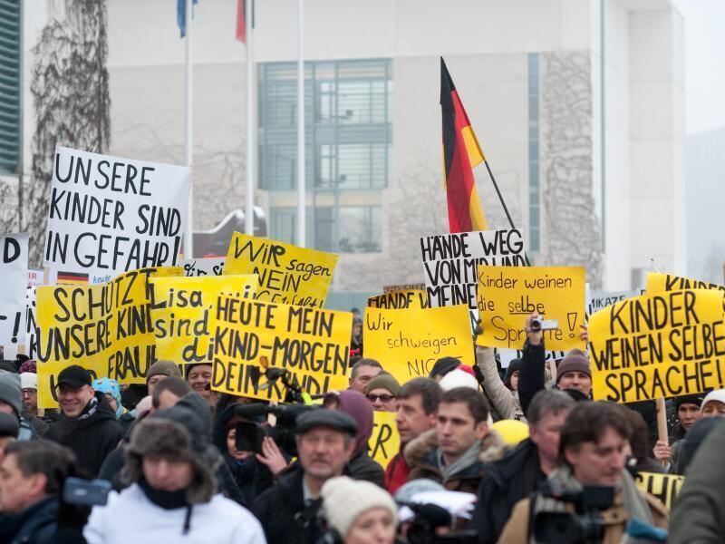 Demonstranten vor dem Kanzleramt: Die angebliche Entführung und Vergewaltigung einer 13-jährigen Russlanddeutschen sorgte Anfang 2016 über Deutschland hinaus für Aufregung. Foto: Klaus-Dietmar Gabbert