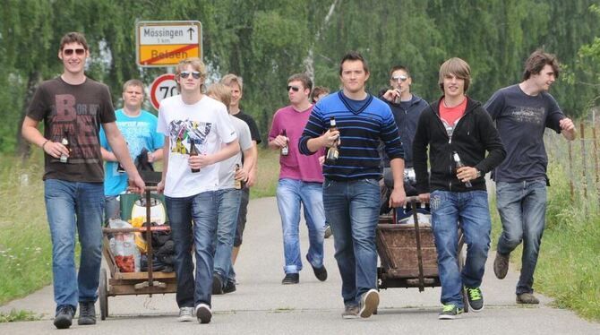 Disziplin an Himmelfahrt: Bollerwagen-Umzug bei Belsen.
