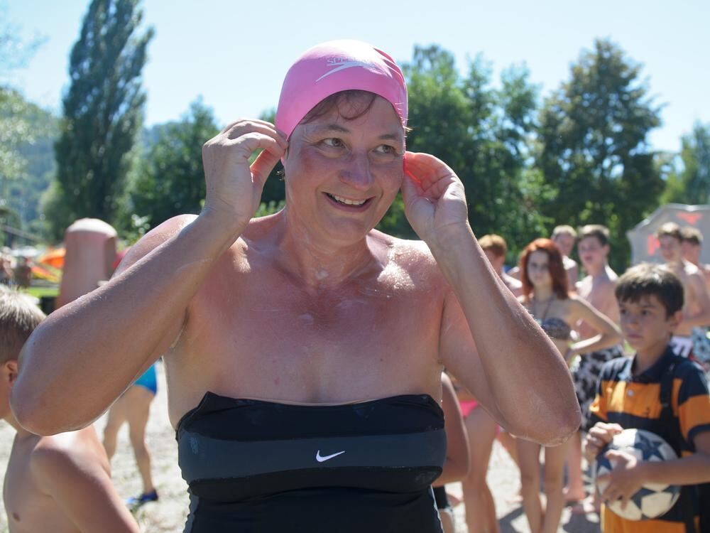 Extremschwimmerin Kirsten Seidel aus Dresden machte sich in Ludwigshafen-Bodman bereit für ihre Schwimmstrecke im Bodensee.