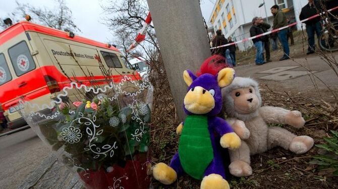 Zeichen des Mitgefühls am Unglücksort in Backnang: Acht Angehörige einer türkischstämmigen Familie starben in Flammen. Foto: Marijan Murat