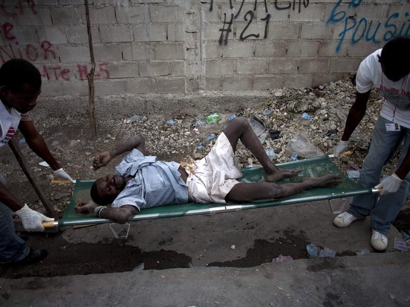 Ein Kranker wird von Medizinern von Ärzte ohne Grenzen in Port-au-Prince versorgt.