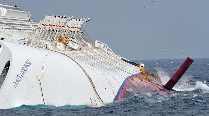 Die 290 Meter lange »Costa Concordia« hatte am 13. Januar nach einer Kursänderung des Kapitäns einen Felsen vor der italienischen Insel Giglio gerammt und war leckgeschlagen. Foto: Luca Zennaro