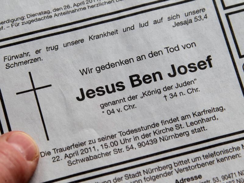 Todesanzeige für Jesus in einer Nürnberger Zeitung.