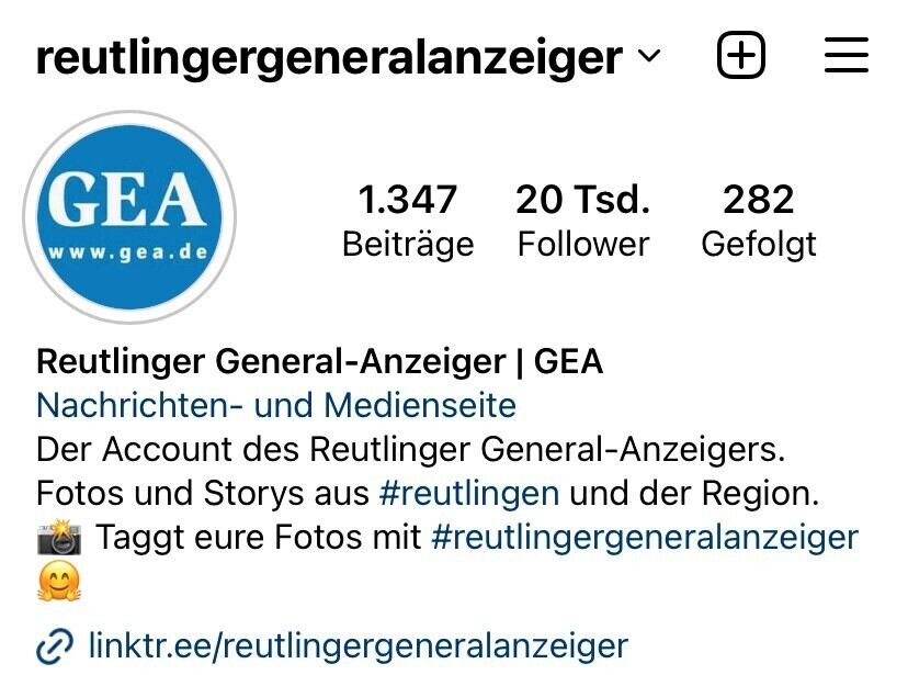 REUTLINGEN. Die Kurve zeigt konstant nach oben. Seitdem der GEA im April 2020 seinen Instagram-Account ins Leben gerufen hat, wächst die Zahl der Follower unaufhaltsam. Nach eineinhalb Jahren hatte der Kanal zunächst die Marke von 10.000 geknackt. Weniger als ein weiteres Jahr später wurde jetzt die 20.000er-Schallmauer durchbrochen. Damit steht der GEA laut Influencer-Vergleichsportal »Likeometer« in Deutschland auf Platz 70 in der Kategorie »Medien«. In der Rubrik »Wachstum« belegt der Kanal mit derzeit rund zwei Prozent Follower-Zuwachs im Monat sogar Rang 40.