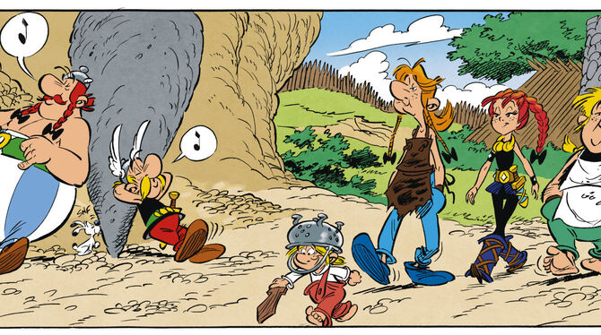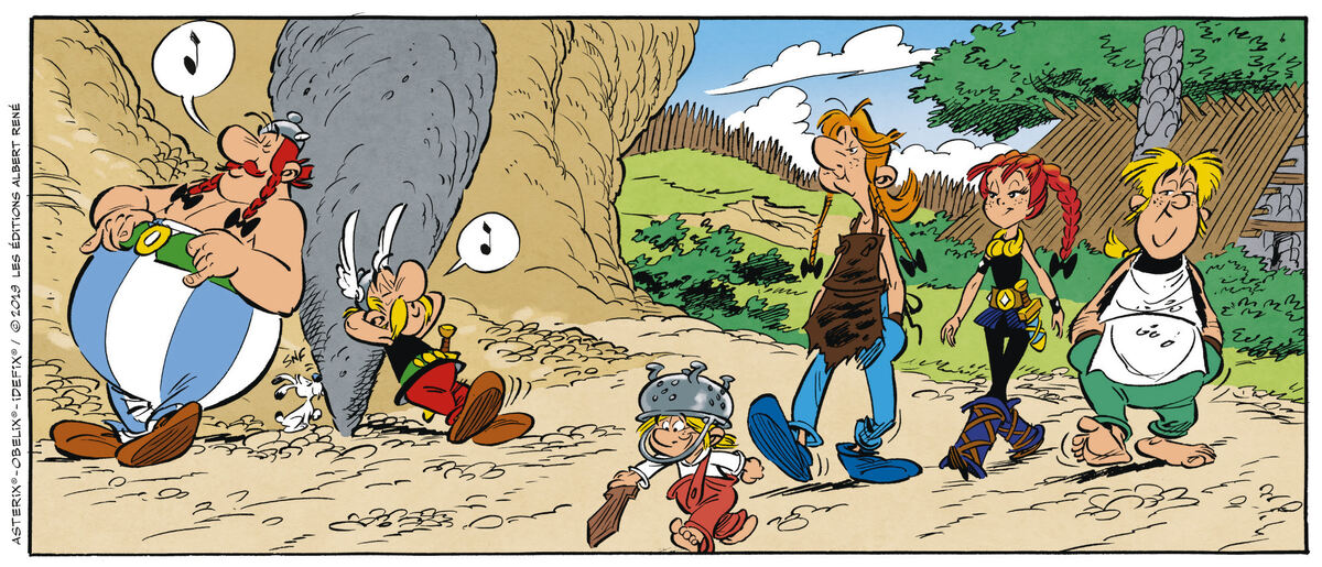 Nur nicht auffallen. Asterix und Obelix sollen die Fürstentochter Adrenaline bewachen, die sich mit der Dorfjugend angefreundet hat. Foto: Asterix® – Obelix® – Idefix® / ©2019 Les Éditions Albert René