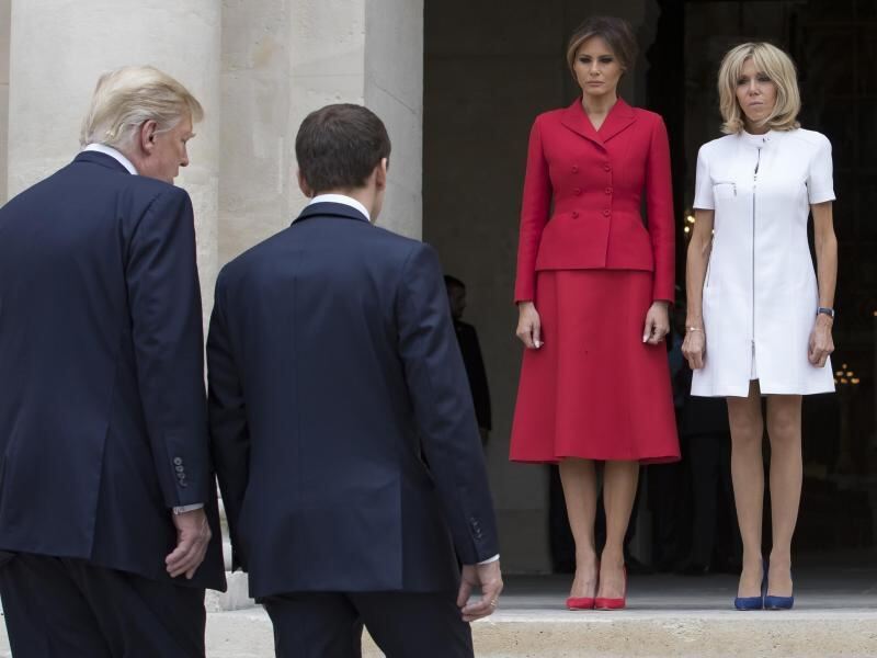 Donald Trump und Emmanuel Macron auf dem Weg zum Invalidendom, wo Melania Trump und Brigitte Macron sie erwarten. Foto: Ian Langsdon