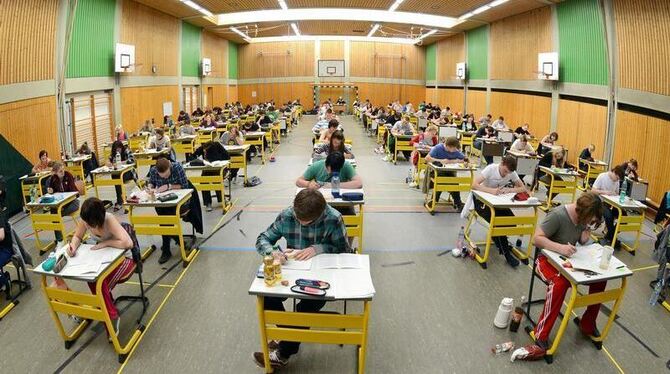 Abiturprüfung in einer Sporthalle. Foto: dpa