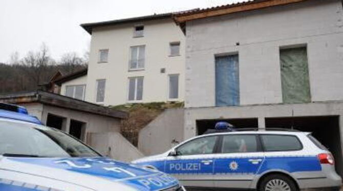 Polizeiautos vor dem Haus in Horb am Neckar, in dem sich eine Familientragödie ereignet hat.