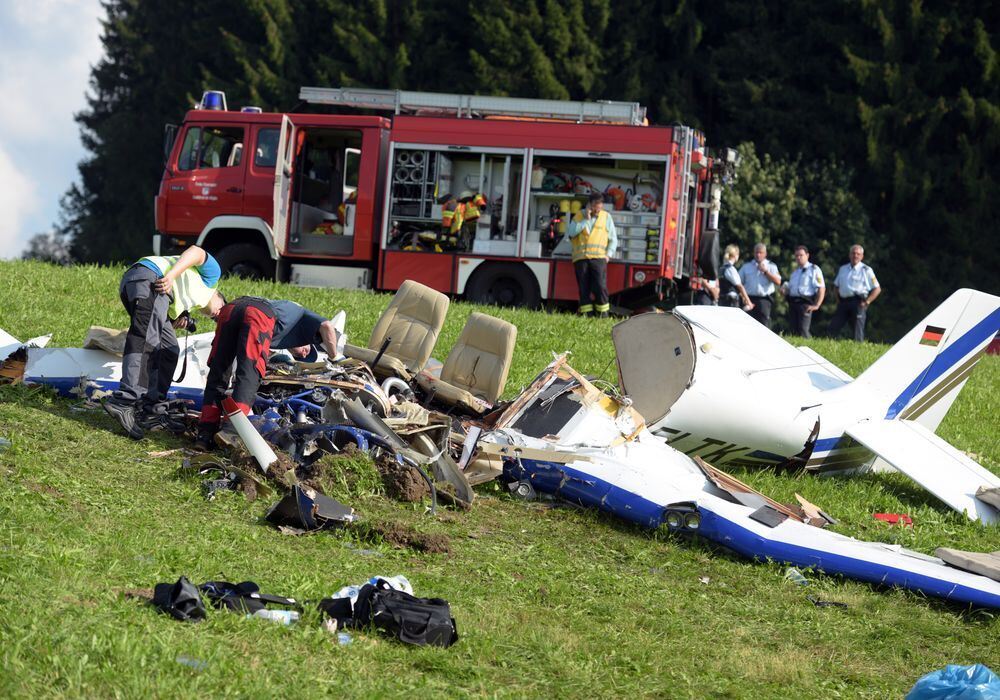 Aus bislang unbekannter Ursache stürzte die mit drei Personen besetzte Maschine kurz nach dem Start in Leutkirch ab. Alle drei Insassen kamen bei dem Absturz ums Leben Foto: Stefan Puchner/dpa