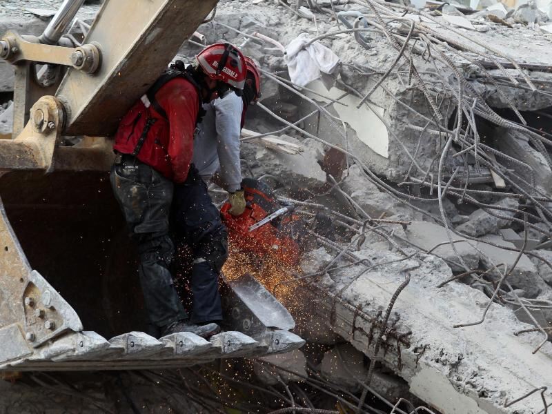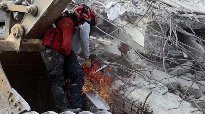 Feuerwehrmänner suchen in den Trümmern in Pedernales nach Überlebenden. Bei dem Erdbeben der Stärke 7,8 kamen in Ecuador mindestens 570 Menschen ums Leben. Darunter ist angeblich auch ein deutsches Opfer. Foto: Jose Jacome
