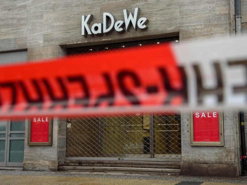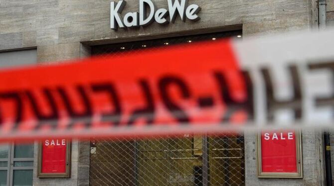 Absperrband vor dem geschlossenen Seiteneingang des Kaufhaus des Westens in Berlin. Foto: Gregor Fischer