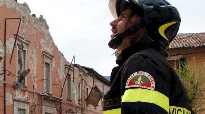 Ein Feuerwehrmann begutachtet im April 2009 die Schäden im Abruzzen-Städtchen L'Aquila. Immer wieder werden die Menschen in Mittelitalien durch Beben verunsichert. Foto: Schiazza/Archiv
