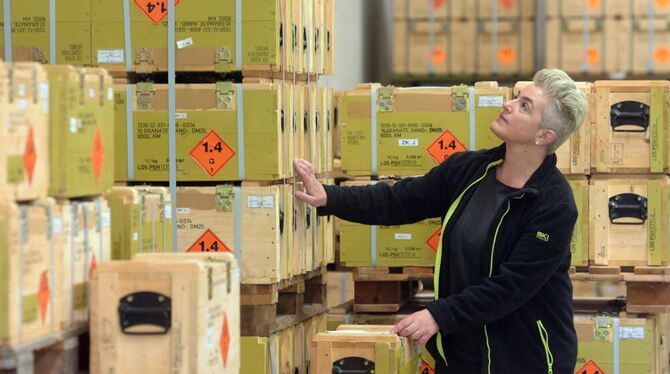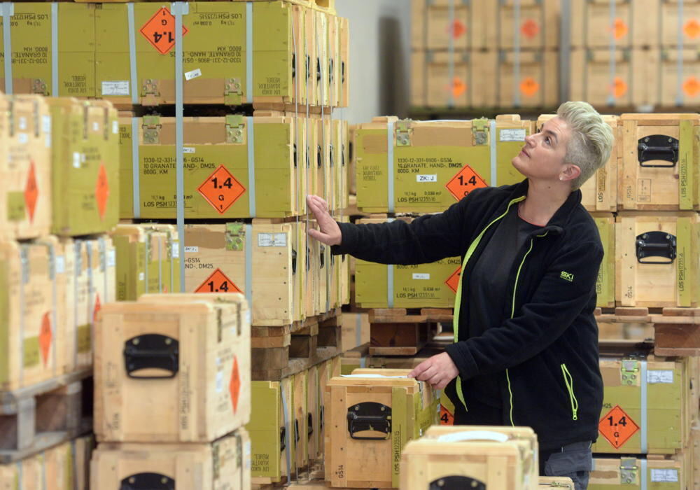 Anna Zica kontrolliert in Setzingen im Munitionsdepot der Bundeswehr in einem Bunker Munitionskisten. Von diesem Depot aus werden alle Standorte in Süddeutschland mit Munition versorgt.