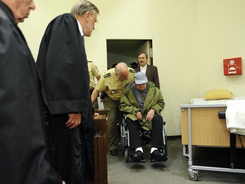 Der wegen Beihilfe zum Mord angeklagte US-Bürger John »Iwan« Demjanjuk wird in München von Polizisten in den Gerichtssaal des Landgerichts München gebracht.