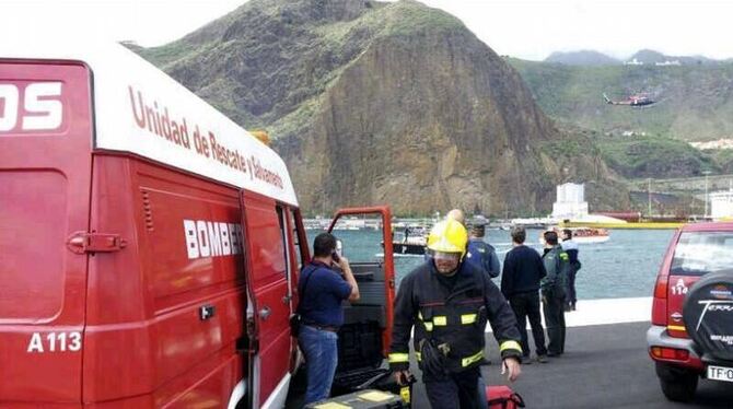 Feuerwehr und Sanitäter kommen zum Kai im Hafen von Santa Cruz de la Palma. Foto: Feuerwehr La Palma