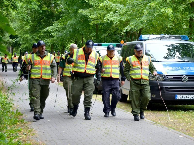 Polizisten suchen in einem Waldstück in Wilhelmsdorf bei Stendal nach der fünfjährigen Inga. Foto: Florian Voigt/Archiv