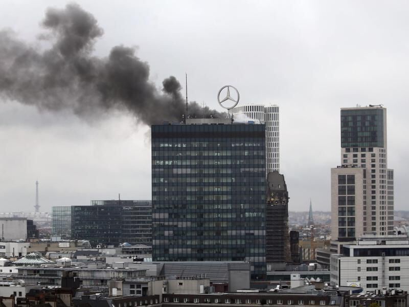 Dichte Rauchschwaden steigen aus dem Europa-Center in Berlin auf. Foto: Wolfgang Kumm