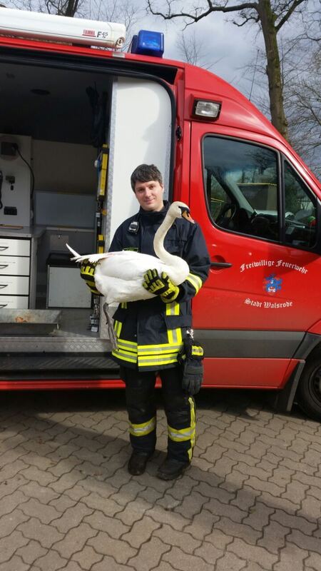 Feuerwehr rettet verletzten Schwan von Baum