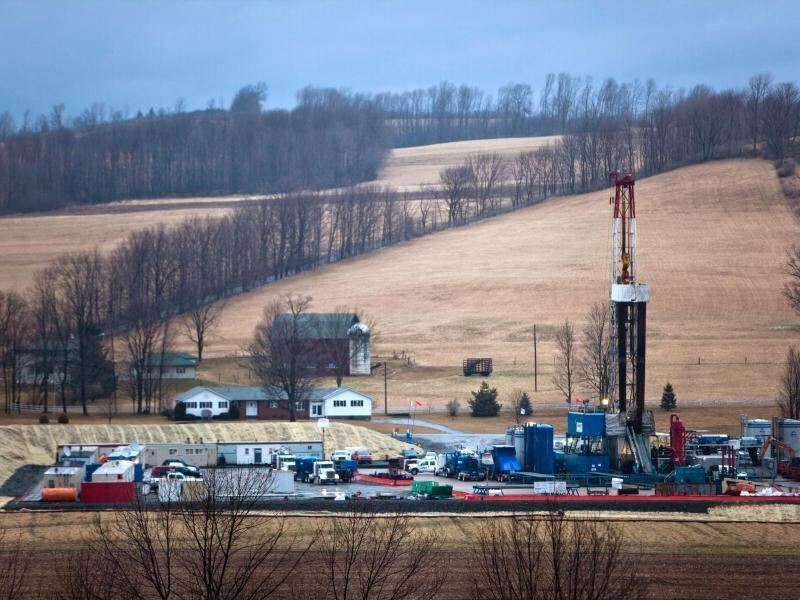 »Fracking«-Ölförderungsplattform bei Troy in Pennsylvania. Fracking kann unter bestimmten geologischen Bedingungen zu relativ starken Erdbeben führen. Foto: Jim Lo Scalzo