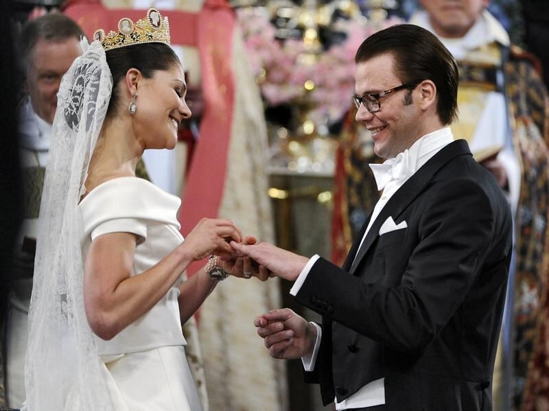 Kronprinzessin Victoria und Daniel Westling tauschen die Ringe.