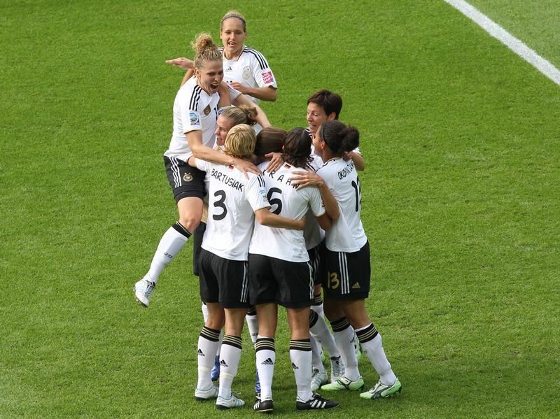 Die deutschen Frauen jubeln über ihren ersten WM-Treffer.