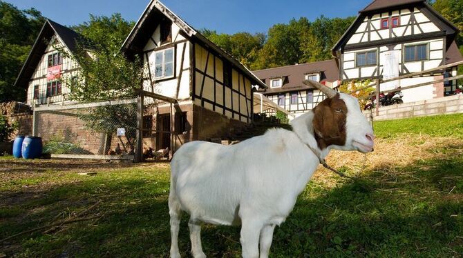 Eine Ziege steht in Leonberg vor dem Seehaus. Seit zehn Jahren werden in dem freien Jugendstrafvollzug junge Straftäter auf ein Leben ohne Kriminalität vorbereitet.