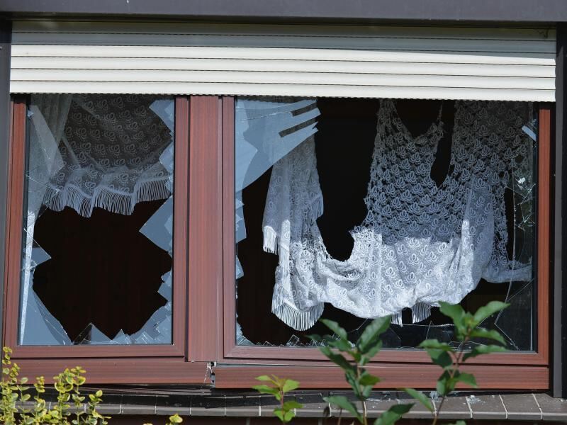 Nach der Explosion einer geflickten Luftmatratze ist das Glas zersplittert, der Fensterrahmen wurde durch den Druck verbogen. Foto: Carmen Jaspersen