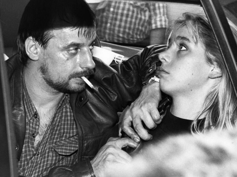 Dieter Degowski bedroht am 18.08.1988 in Köln Silke Bischoff mit einer Waffe. Foto: Hartmut Reeh/Archiv