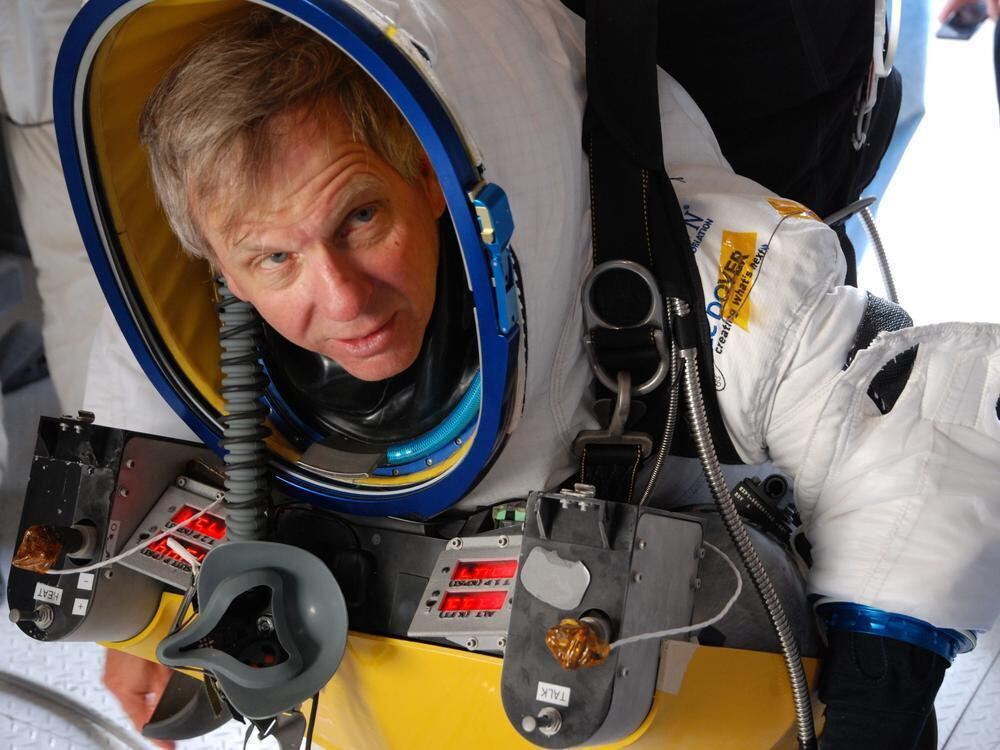 Alan Eustace in seinem Schutzanzug. Foto: dpa