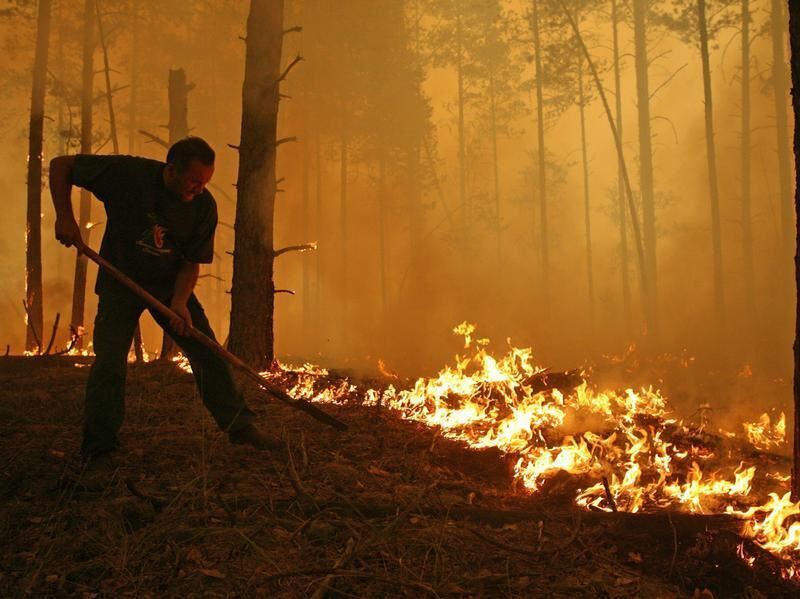 Freiwillige Helfer versuchen den Brand bei dem Dorf Golovanovo 270 km südöstlich von Moskau zu löschen.